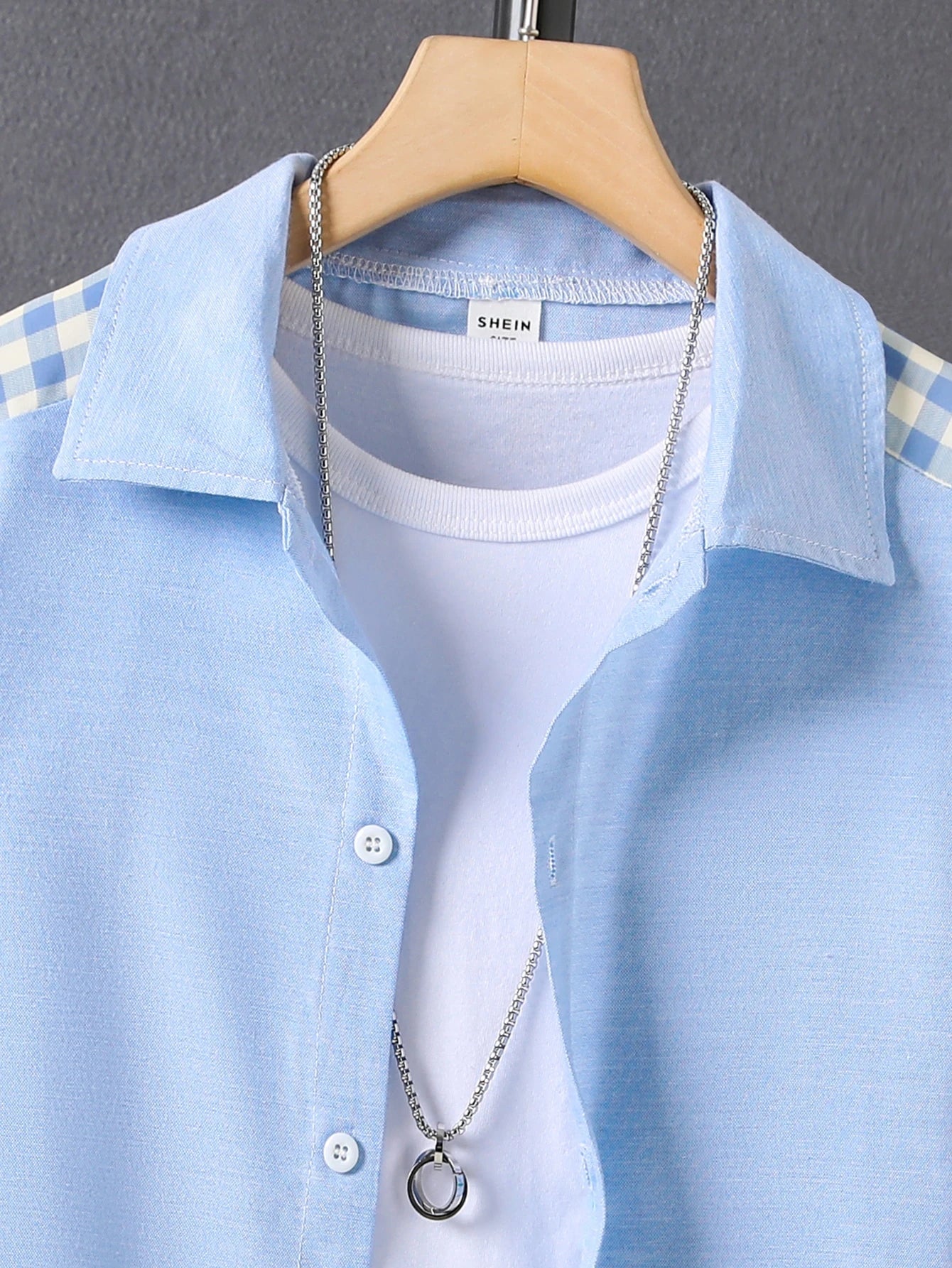 Cămașă cu mânecă scurtă SHEIN, albastru