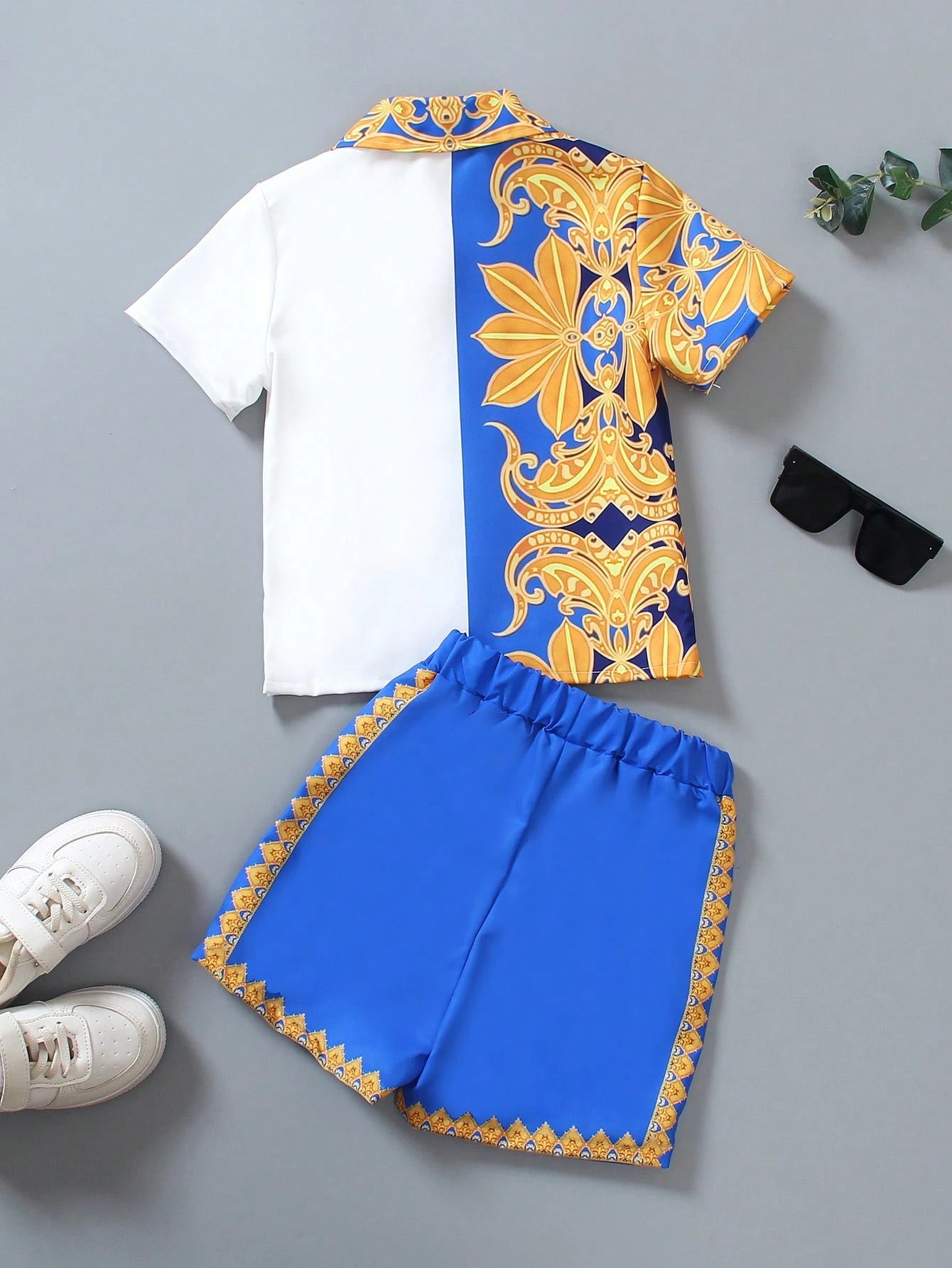 Compleul contine camasa si pantaloni.