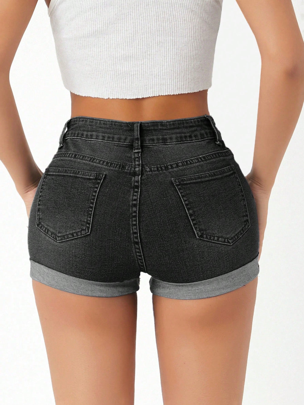 Pantaloni scurți de blugi Shein, negru