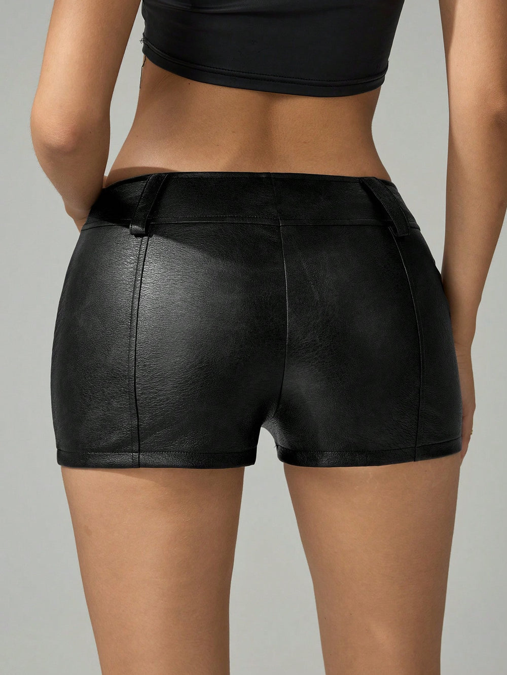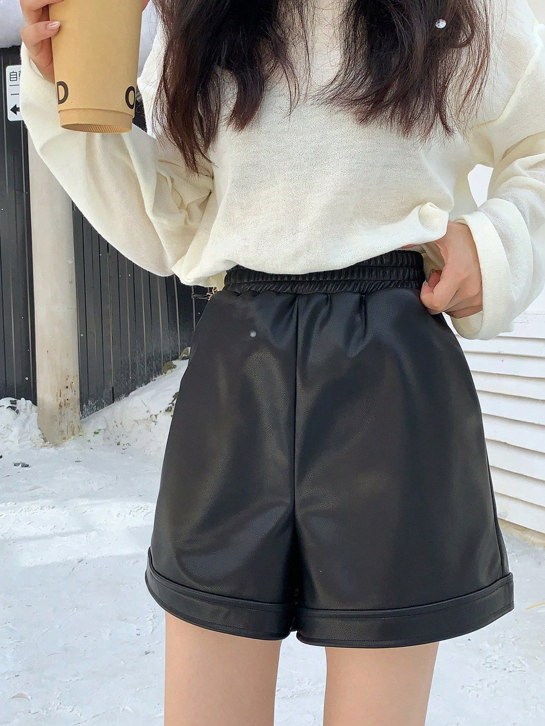 Pantaloni scurți din imitație de piele Shein, negru