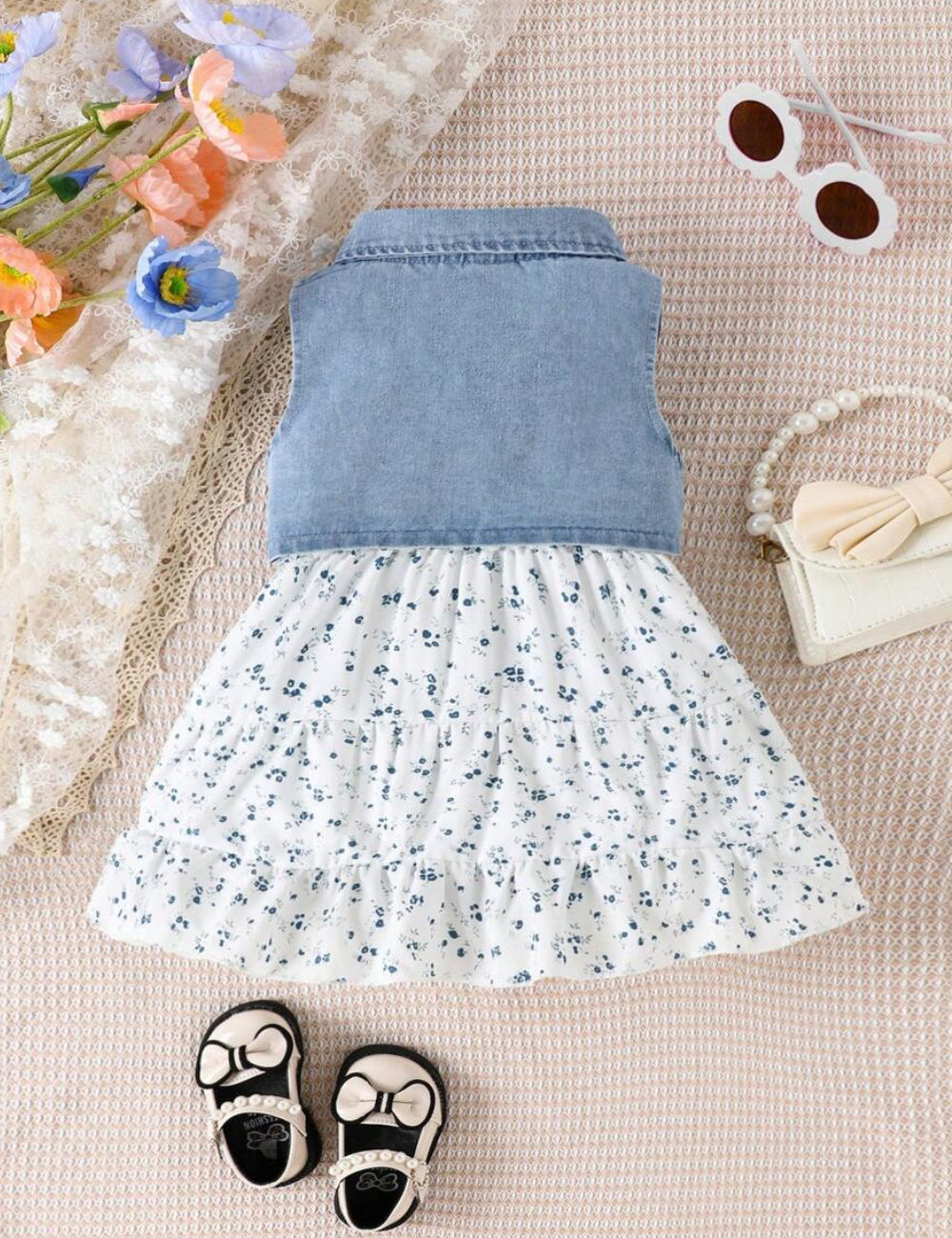 Set rochie și vestă Shein, albastru